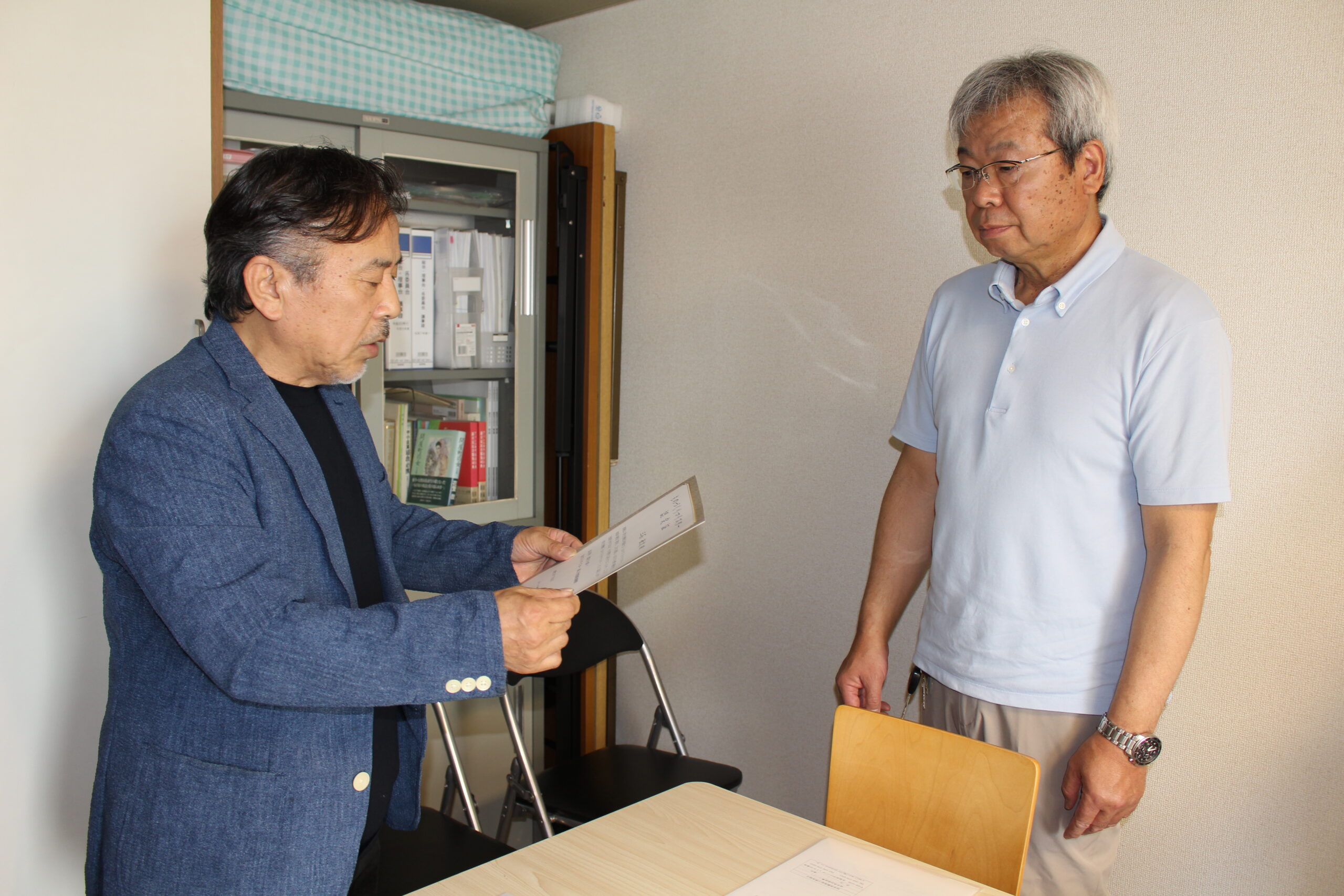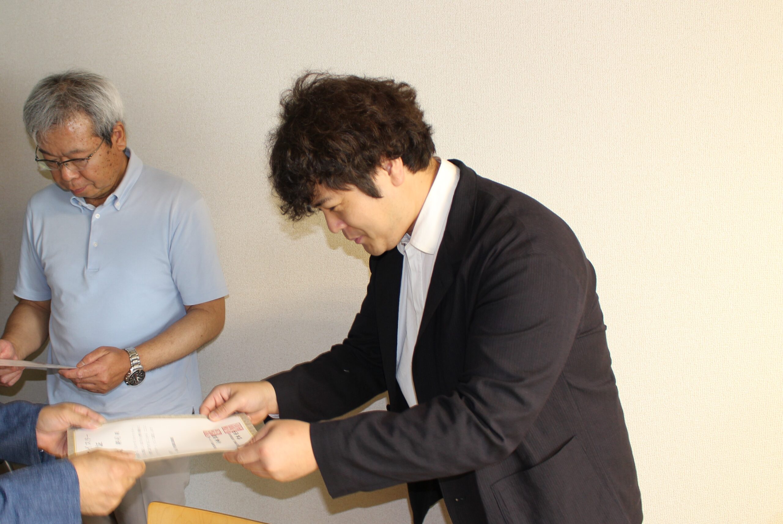 当組合員の三石敏文さんと三成耕司さんがものづくりマイスターに認定され、認定証の授与が行われました。